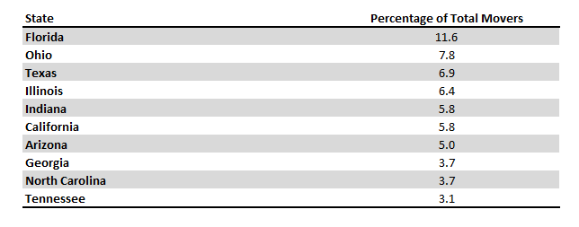 Many of the counties listed above either border Michigan or contain large metropolitan areas—two types of endpoints that one might expect to see when analyzing population movements. The border counties mentioned include cities such as Toledo, South Bend, and Elkhart. The large metropolitan areas found in the counties referenced above include Houston, Fort Worth, Chicago, Indianapolis, Los Angeles, San Diego, Phoenix, Atlanta, Charlotte, Memphis, and Nashville. The only counties that don’t directly fall under either category are Hidalgo County, Texas (which borders Mexico) and the Florida counties. The Florida counties mentioned include areas surrounding the “I-4 Corridor,” which runs through Tampa, Orlando, and Daytona Beach. These counties are prominent locations for retirees and feature easy access to recreation.