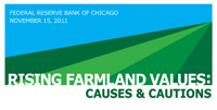On November 15, 2011, the Federal Reserve Bank of Chicago held a conference that explored the factors contributing to large increases in agricultural land values and cash rental rates in the Midwest. Farmland values increased 16 percent from a year ago in the first quarter of 2011; 2011 cash rents for farmland increased 16 percent as well. At the conference, experts from academia, industry and policy institutions presented research on the causes of rapid increases in agricultural land values and cash rents, as well as their interrelationship. The goals of the conference included analyzing demographic and geographical characteristics of Midwest farmland ownership; understanding the dynamics of farmland valuations; assessing the risks facing agriculture and the banking industry from rising farmland values; and discussing policy implications for agricultural lending stemming from current farmland trends.