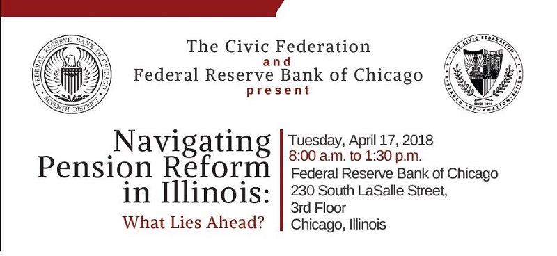The Civic Federation partnered with the Federal Reserve Bank of Chicago to co-host "Navigating Pension Reform in Illinois: What Lies Ahead?" on Tuesday, April 17, 2018.