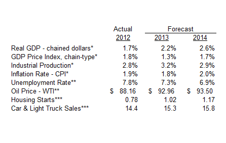 Real GDP - chained dollars* | 1.7% | 2.2% | 2.6% |